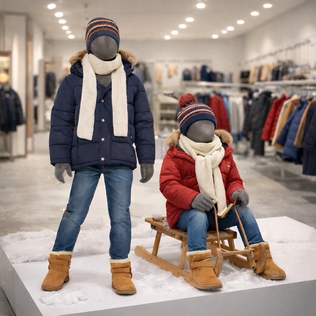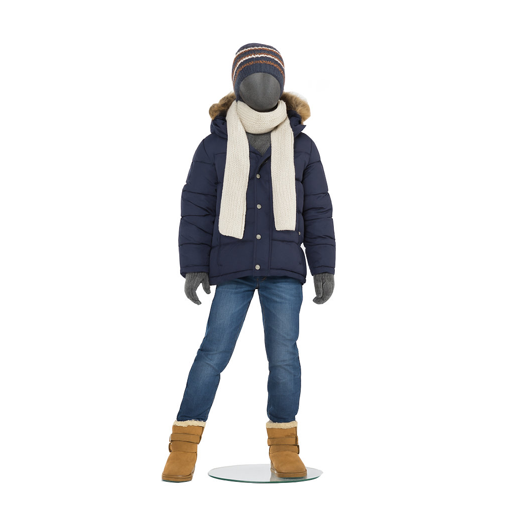 - Lieferumfang: Kinder-Schaufensterfigur inkl. runder Metallstandplatte