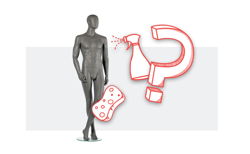 Die Reinigung hängt maßgeblich vom Material ab. Zur normalen Reinigung reicht es, die Puppe mit einem weichen Staubtuch abzureiben. Soll die Reinigung etwas gründlicher ausfallen, kann mit warmen Wasser, einem Schwamm und ein paar Tropfen milder Seife gereinigt werden. Sie sollten allerdings immer den Empfehlungen des Herstellers folgen. Bei individuell bemalten oder gefertigten Schaufensterpuppen werden oftmals spezielle Reinigungsmittel benötigt.