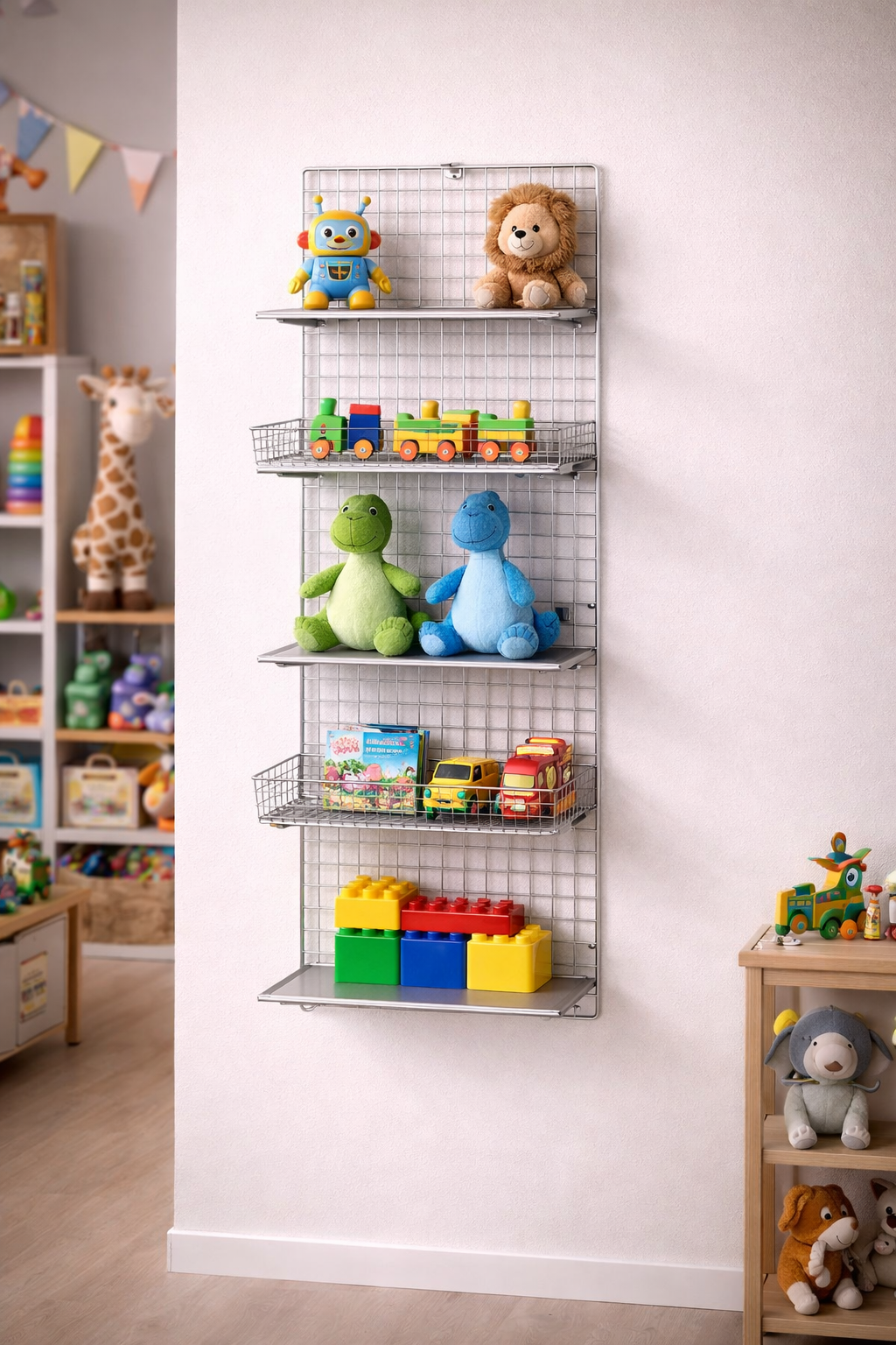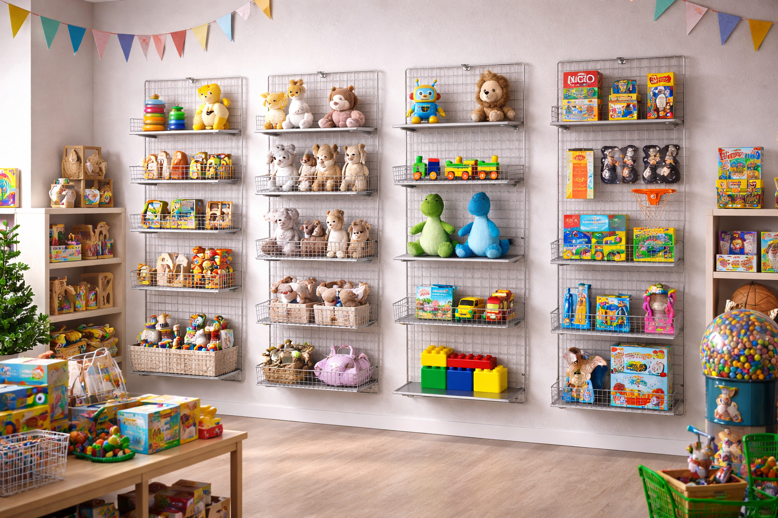 So kann Ihre Ladeneinrichtung mit dem verchromten Deko Drahtgitter individuell und sehr modern gestaltet werden.