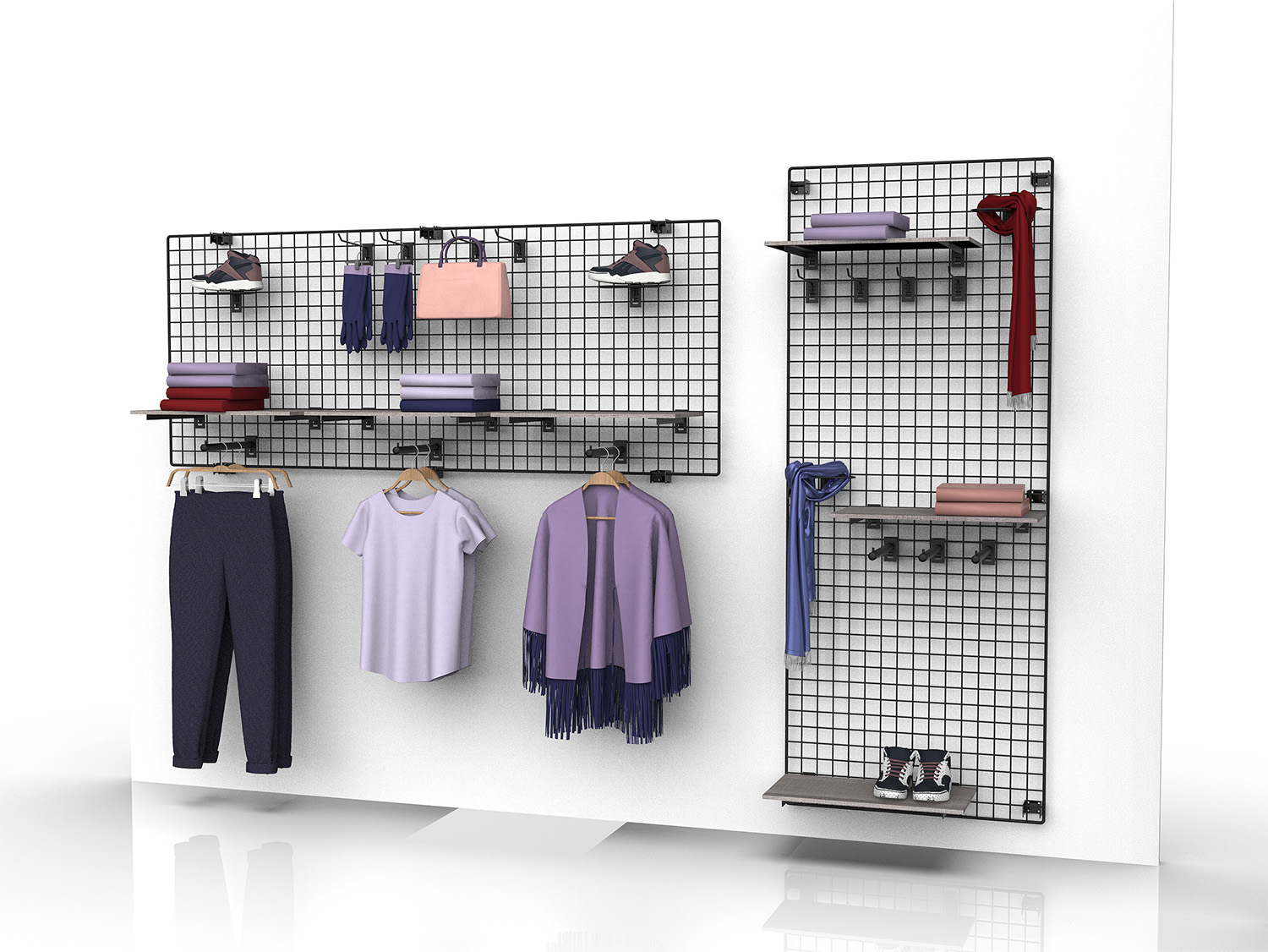 Das Deko Wandgitter im 2er-Set ist in jeder Textil Ladeneinrichtung optimal einsetzbar.