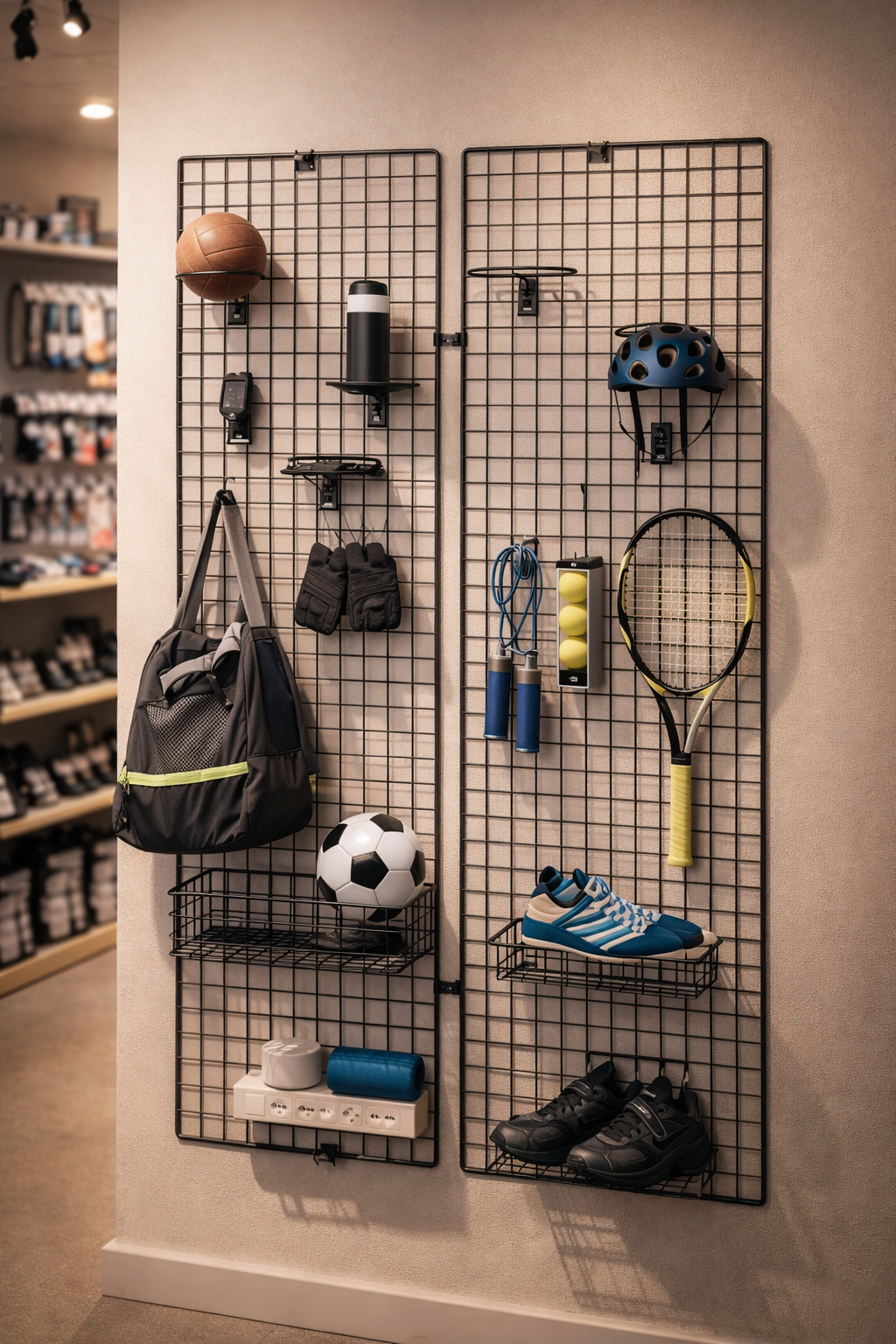 Das Deko Wandgitter im 2er-Set ist in jeder Textil Ladeneinrichtung optimal einsetzbar.
