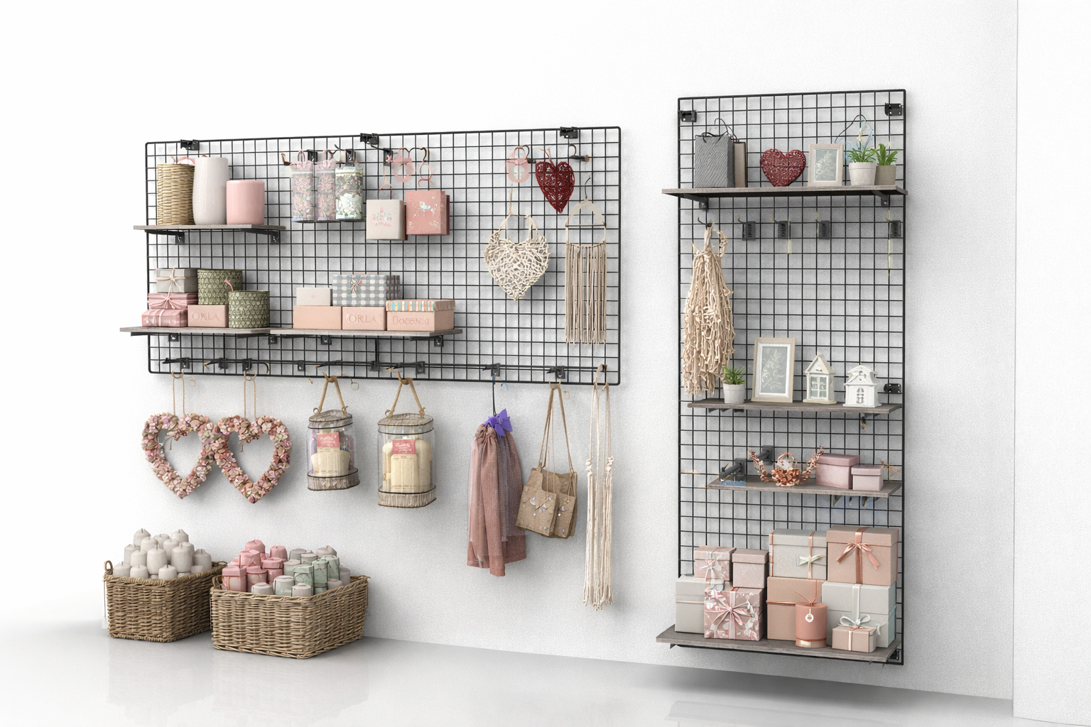 Das Deko Wandgitter ist 200 cm hoch, 60 cm breit und hat eine Maschenweite von 50 mm. Der Durchmesser der Drahtstärke des Rahmens beträgt 10 mm und des Gitterdrahts 4 mm. Das Drahtgitter wird in Farbe schwarz geliefert. Die Drahtgitter können flexibel miteinander kombiniert und mit diversem Zubehör bestückt werden, z.B. in einer Buchhandlung Ladeneinrichtung. Eine günstige Alternative, um Ihre Ware optimal zu präsentieren.