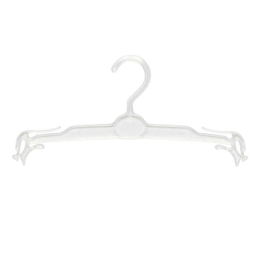 Der Wäschebügel mit Rock-Häkchen und Klemmhalter ist 32 cm breit und aus glasklarem Kunststoff.