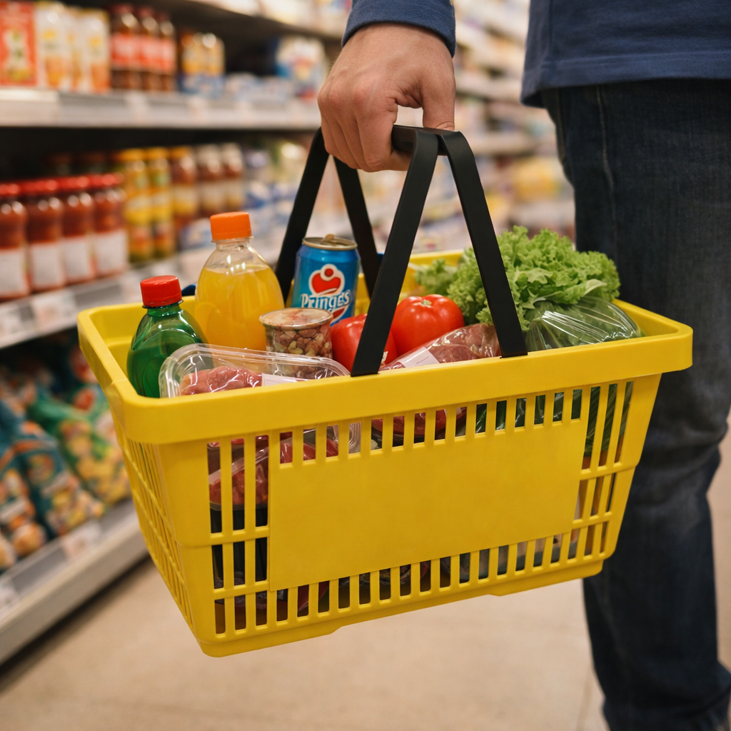 Der praktische Einkaufskorb aus Kunststoff hat 2 Tragegriffe. Das Fassungsvermögen dieses Korbs liegt bei ca. 22 l. Der praktische Einkaufskorb ist beliebig stapelbar und hat die Farbe Gelb. Ein Muss für jedes Ladengeschäft!