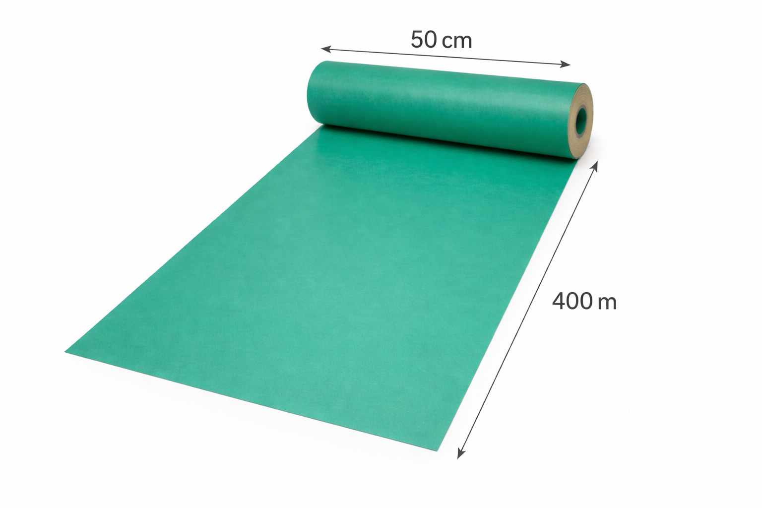 Das Geschenkpapier ist einseitig bedruckt und ca. 400 m lang. Die Grammatur ist 50 g/m². Das Papier ist 50 cm breit und wiegt ca. 10 kg. Das Geschenkpapier hat die schlichte Farbe Grün. Der Preis gilt pro Rolle.
