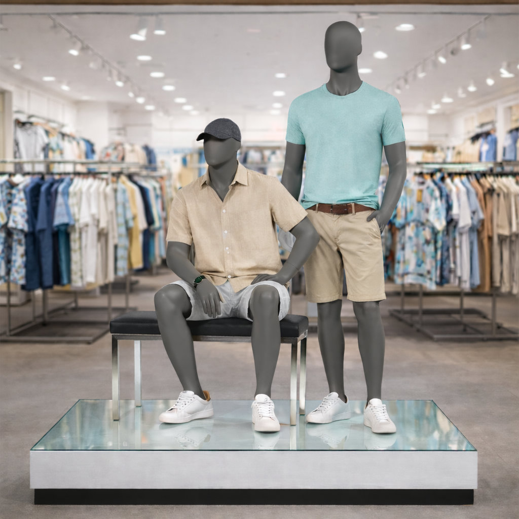 - Lieferumfang: Schaufensterpuppe inkl. runder Glasstandplatte