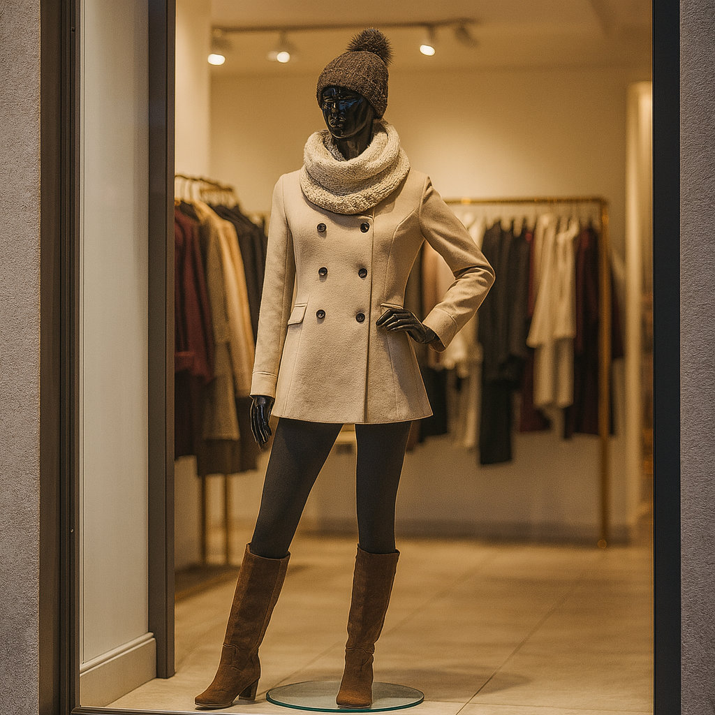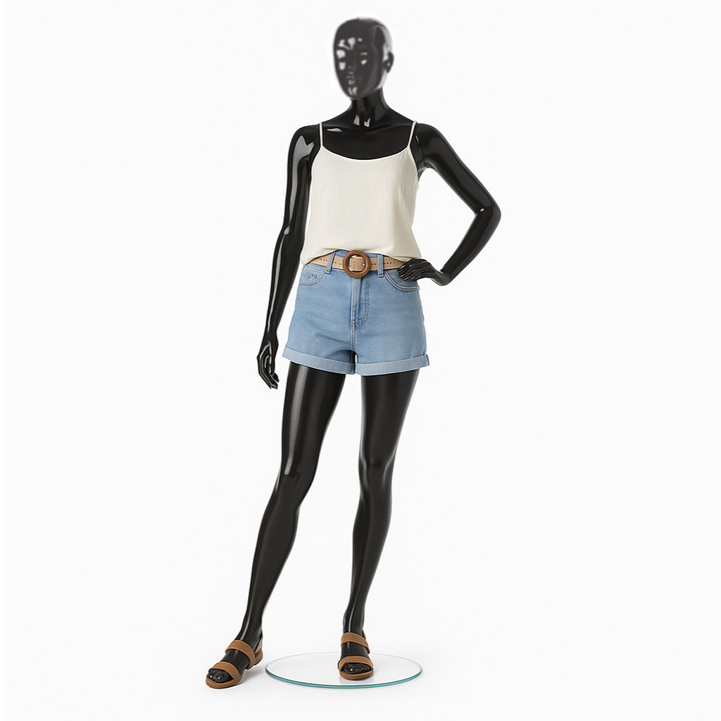 - Lieferumfang: Schaufensterpuppe inkl. runder Glasstandplatte