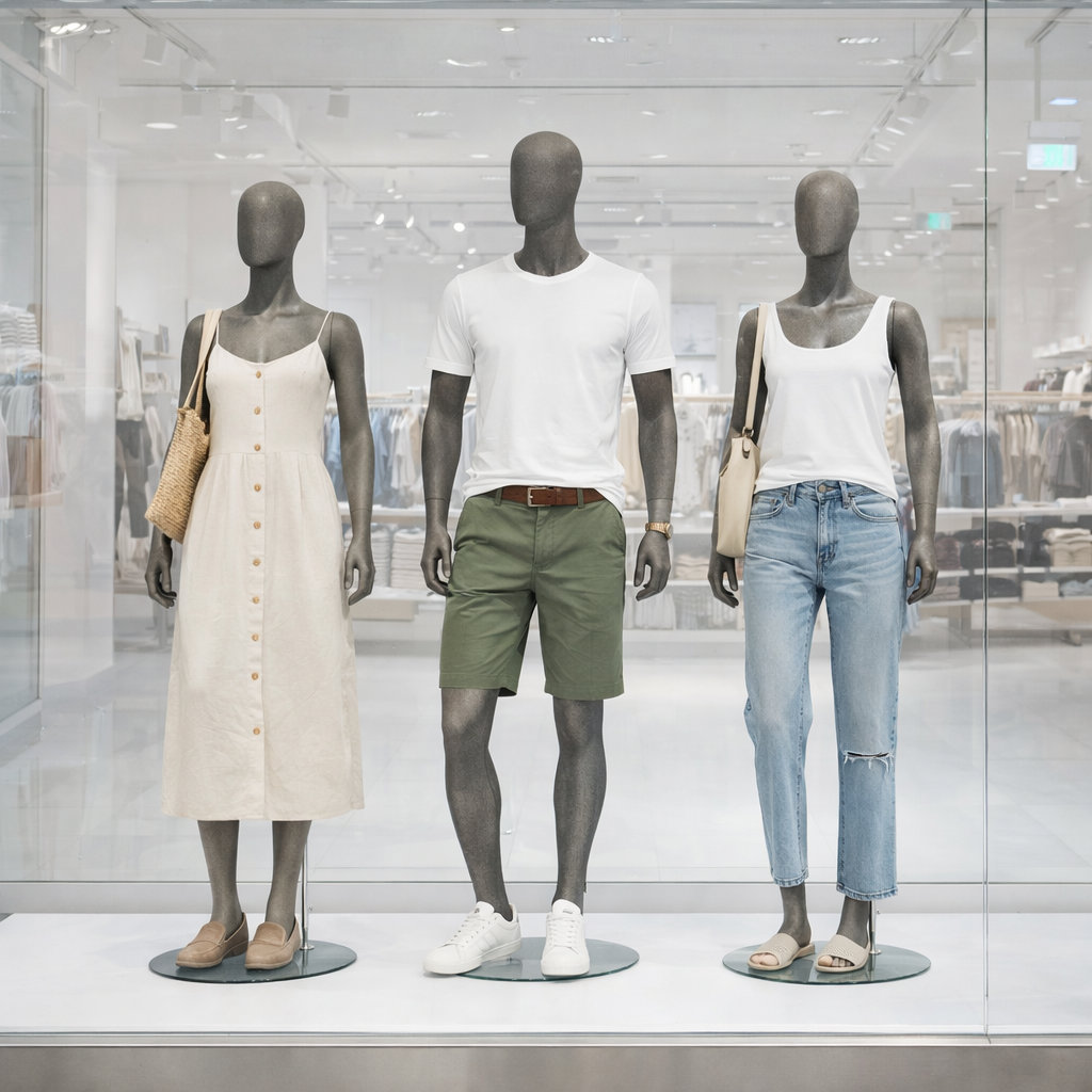 - Lieferumfang: Schaufensterfigur inkl. runder Metallstandplatte