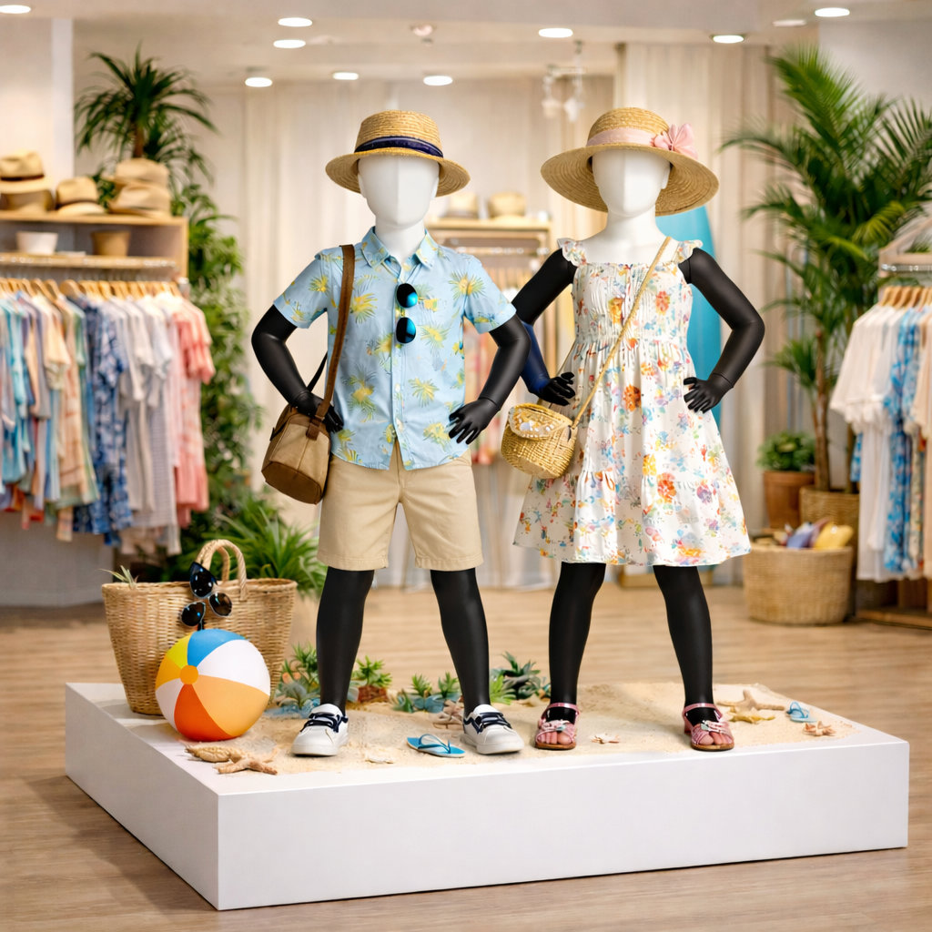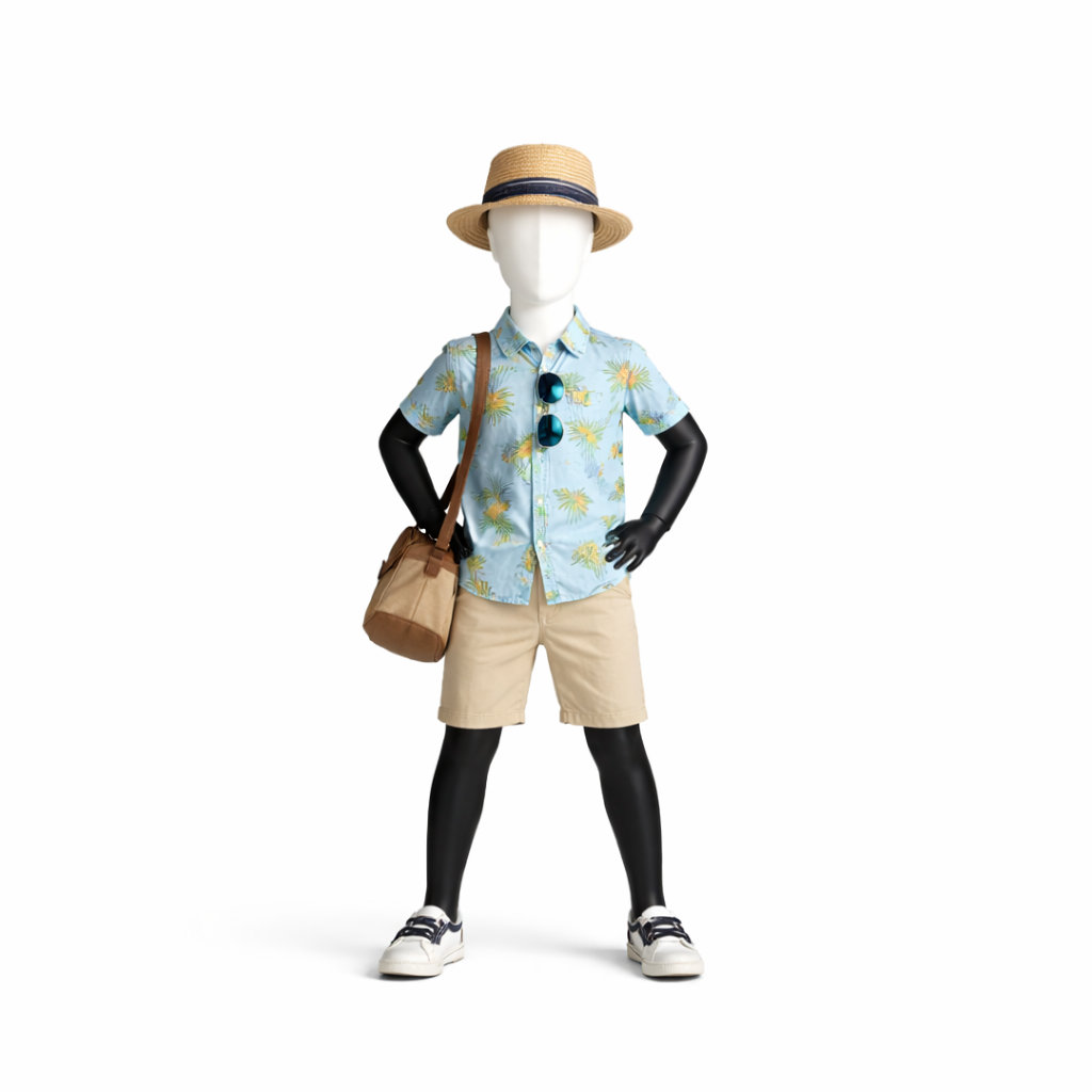 - Lieferumfang: Kinder-Schaufensterpuppe inkl. runder Glasstandplatte, Kit mit Aufbauanleitung, Handschuhe, Radiergummi