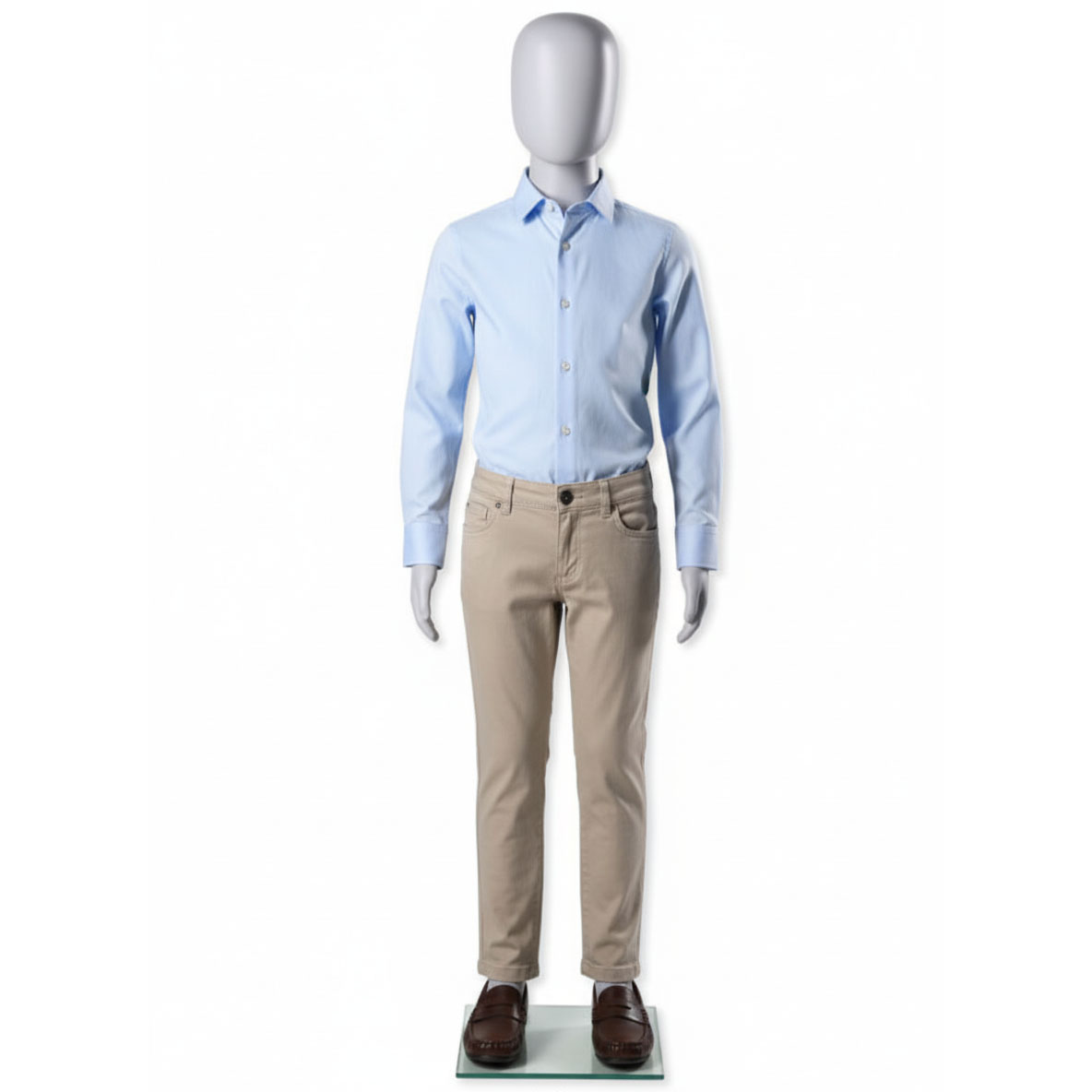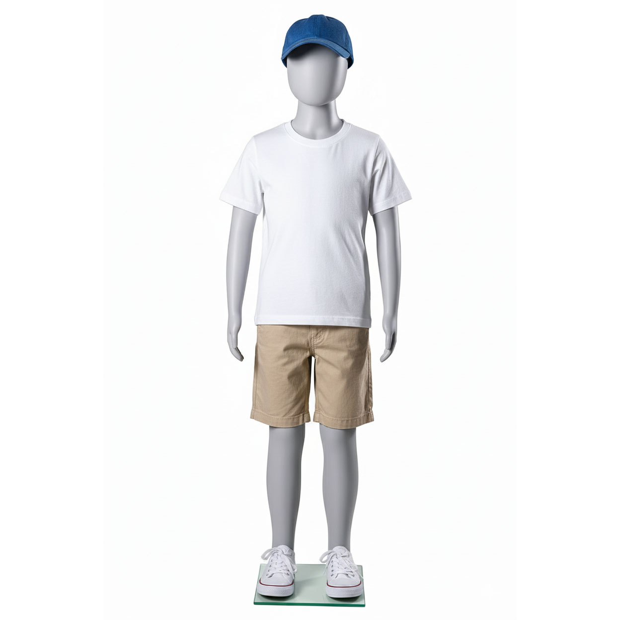 - Lieferumfang: Kinder-Schaufensterpuppe inkl. runder Glasstandplatte