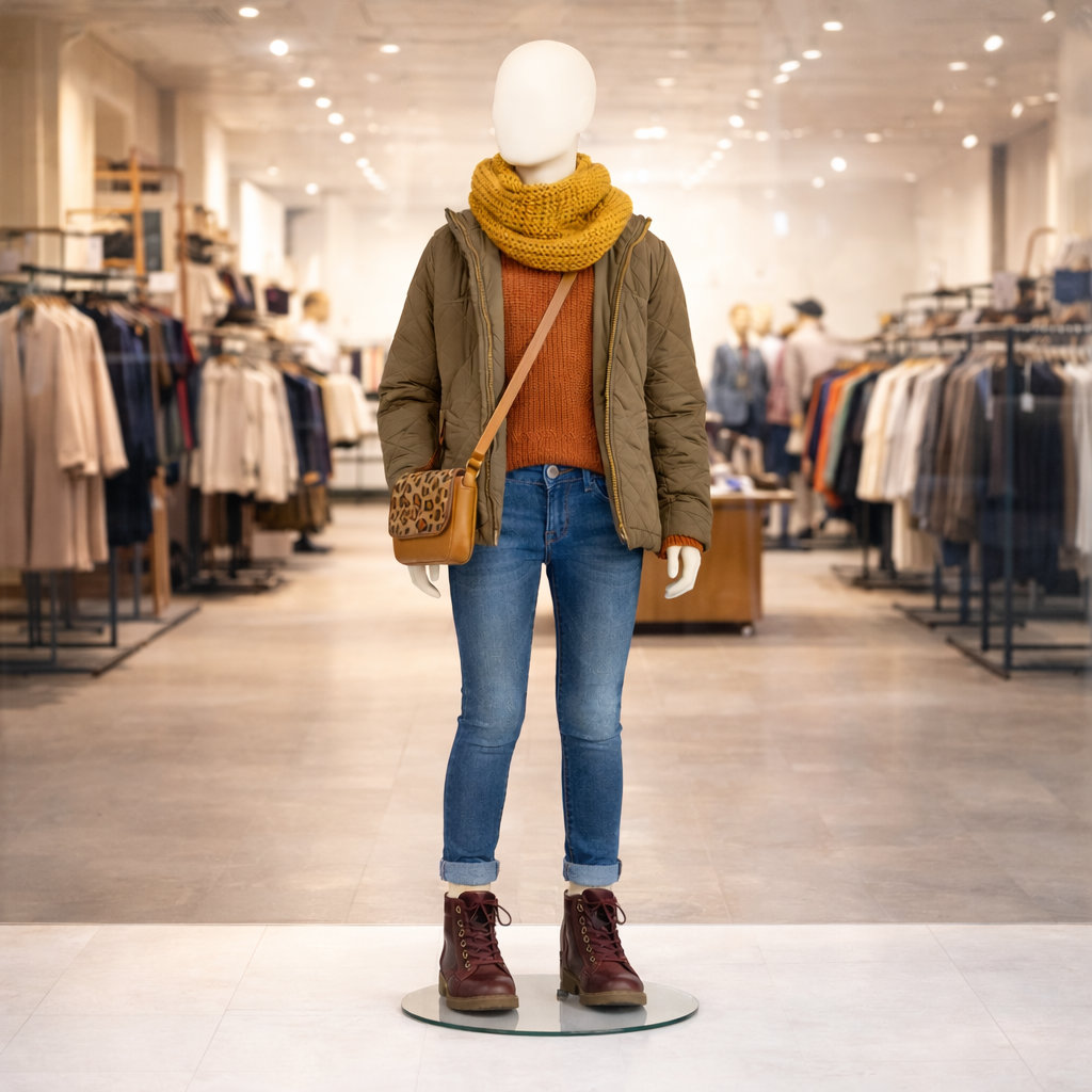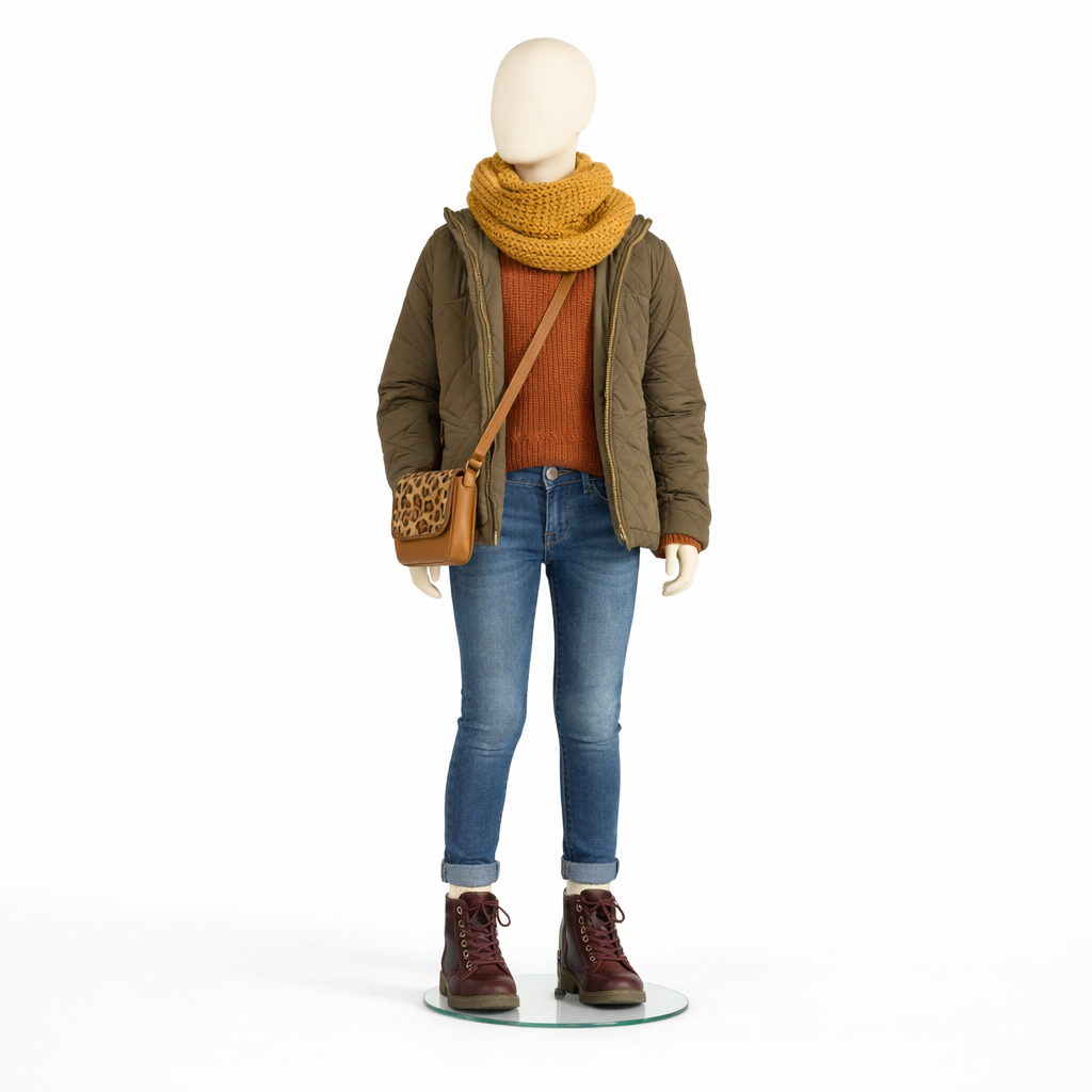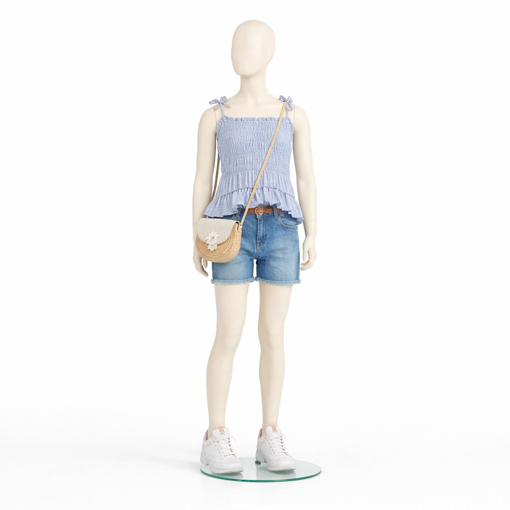 - Lieferumfang: Mädchen-Schaufensterpuppe inkl. runder Glasstandplatte