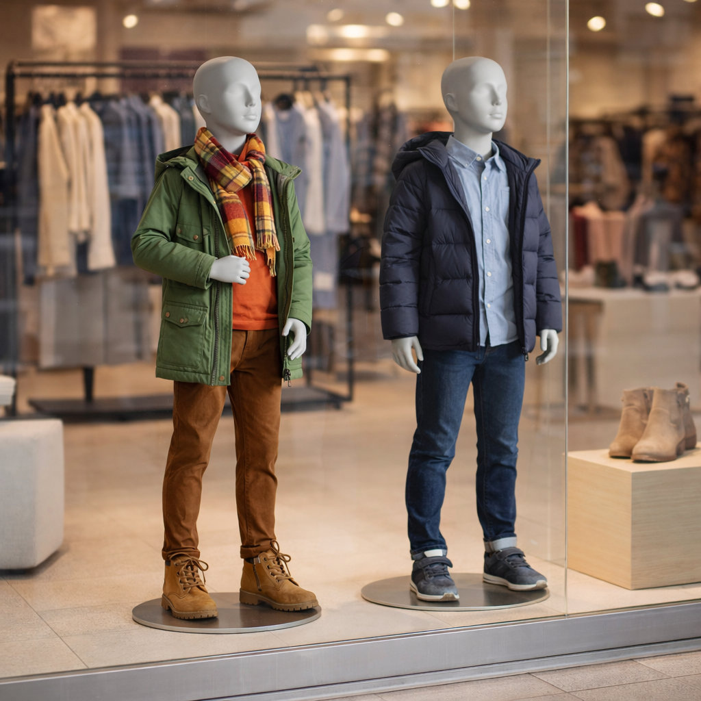 - Lieferumfang: Kinder-Schaufensterpuppe inkl. Metallstandplatte (30 × 30 cm), Handschuhe, Aufbauanleitung und Radiergummi
