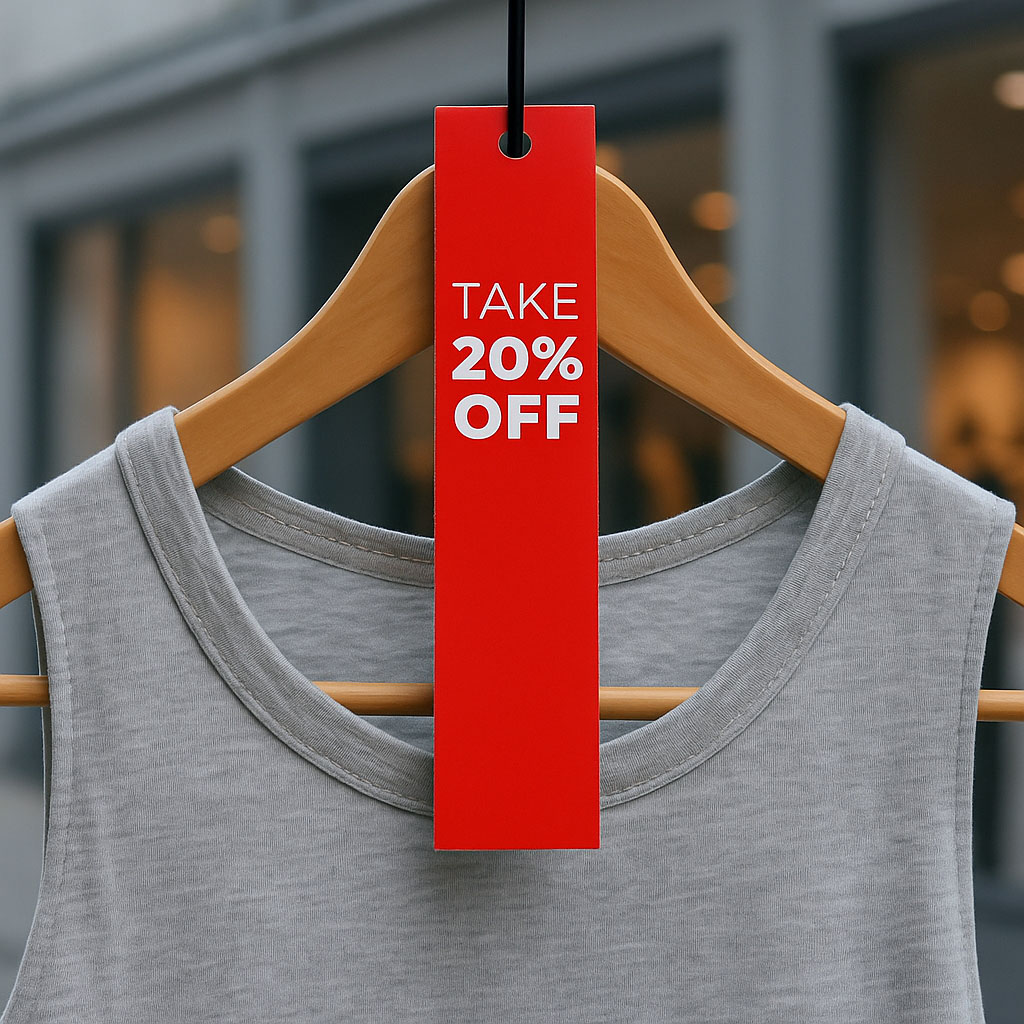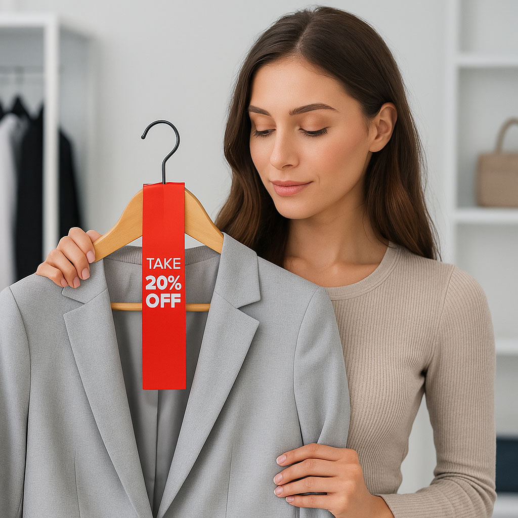 Der Kleiderbügelhänger 'SALE 20% OFF' eignet sich für die