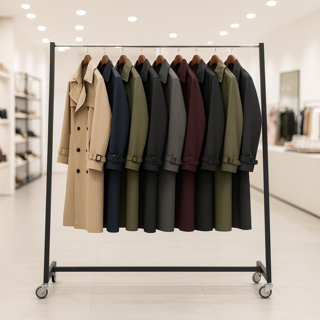 Der Konfektionsständer SCALA (B 140 x H 169 x T 55 cm, schwarz) ist die ideale Wahl für Ladenbesitzer, die ihre Textilien ansprechend und flexibel präsentieren möchten. Das pulverbeschichtete Vierkantrohr-Gestell (30 x 30 mm) sorgt für Stabilität, während die verchromte Abhängestange (Ø 25 mm) hochwertige Akzente setzt.