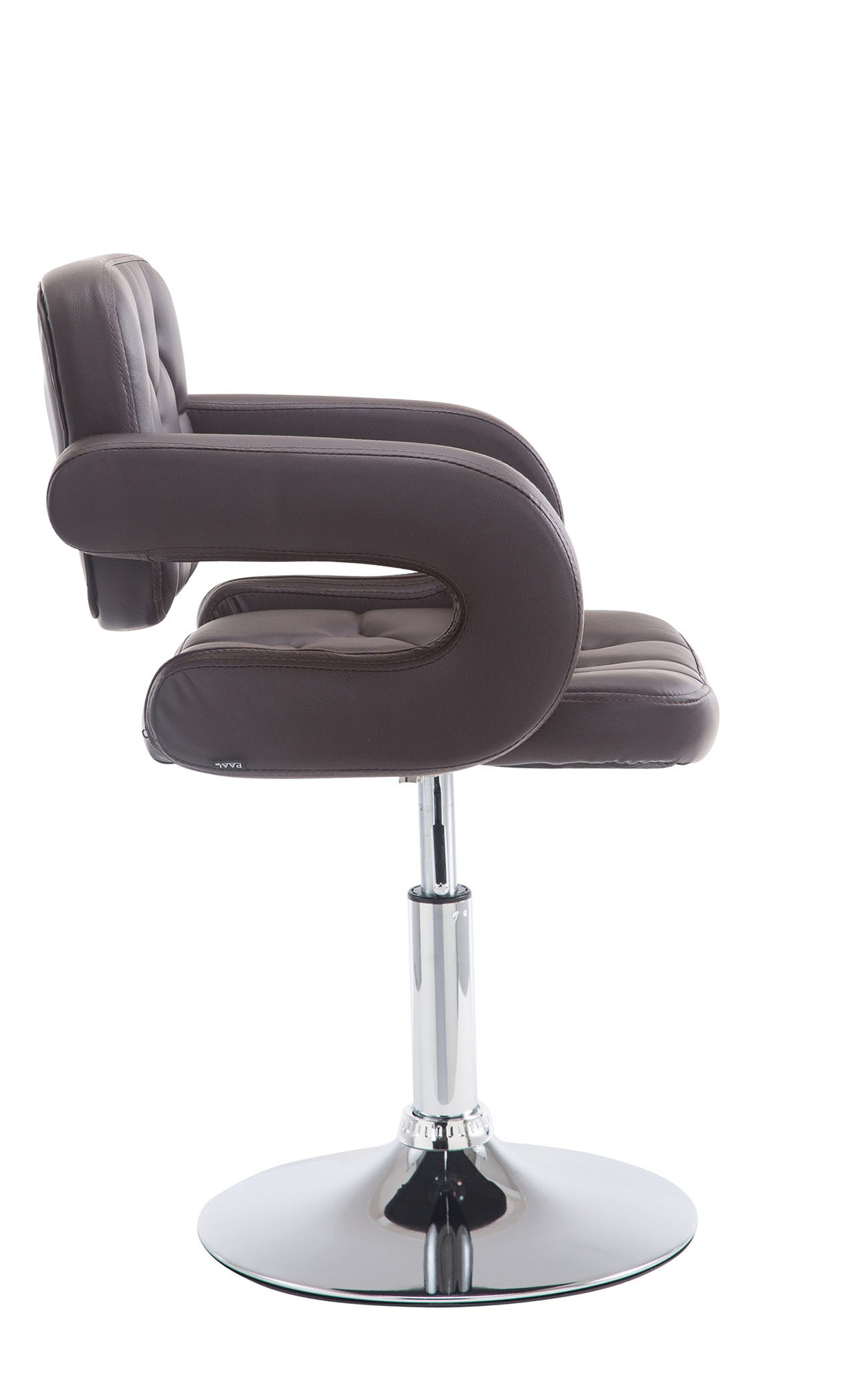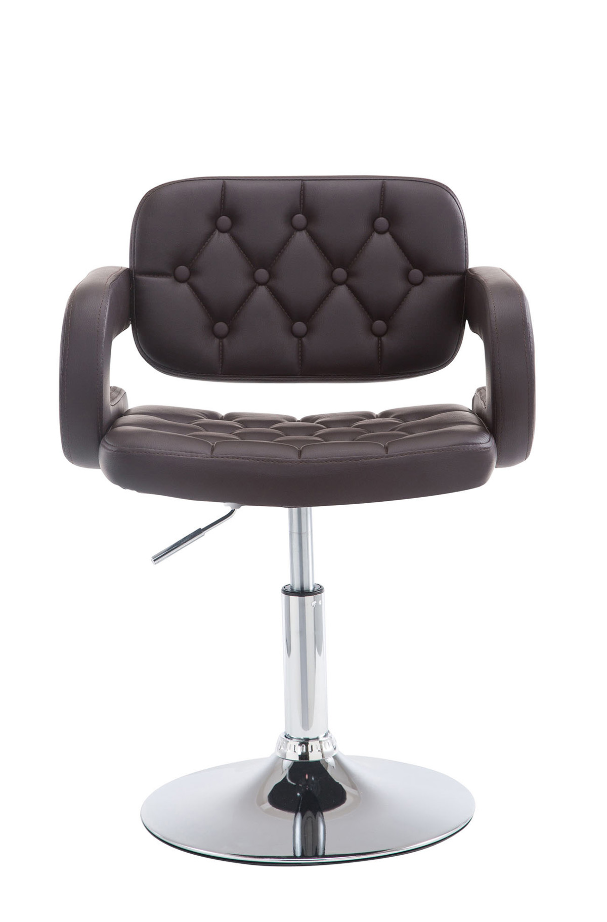 Dank des gepolsterten Sitzes mit Kunstlederbezug ist dieser Lounger auch nach längerem Verweilen besonders bequem. Die Armlehnen sowie die Rückenlehne unterstützen zusätzlich den Sitzkomfort. Der Lehnstuhl ist sowohl höhenverstellbar als auch um 360° drehbar und verspricht somit mehr Flexibilität. Das Gestell besteht aus Metall in Chromoptik und unter dem Trompetenfuß befinden sich Bodenschoner, die ein Verkratzen des Bodens verhindern.