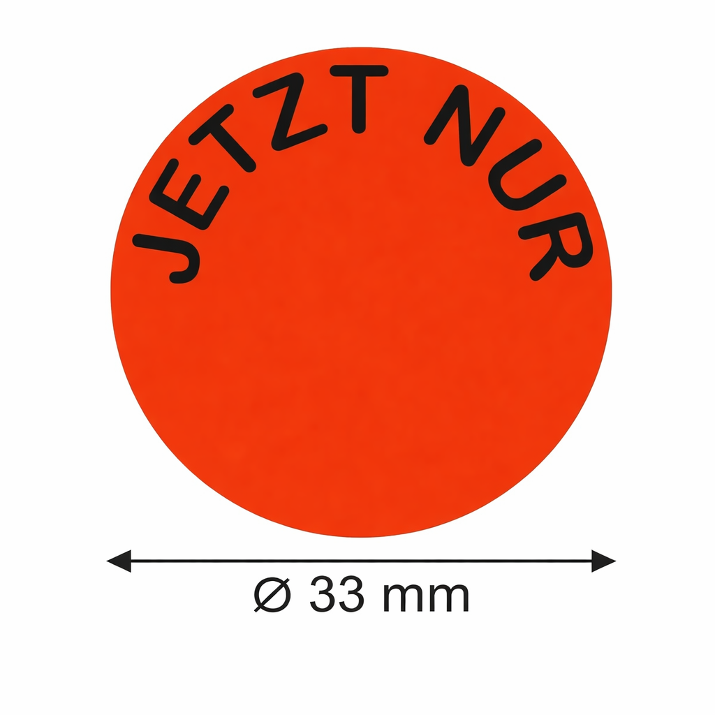 - Preisetiketten Rund 33 mm in Rot mit Aufdruck "JETZT NUR"