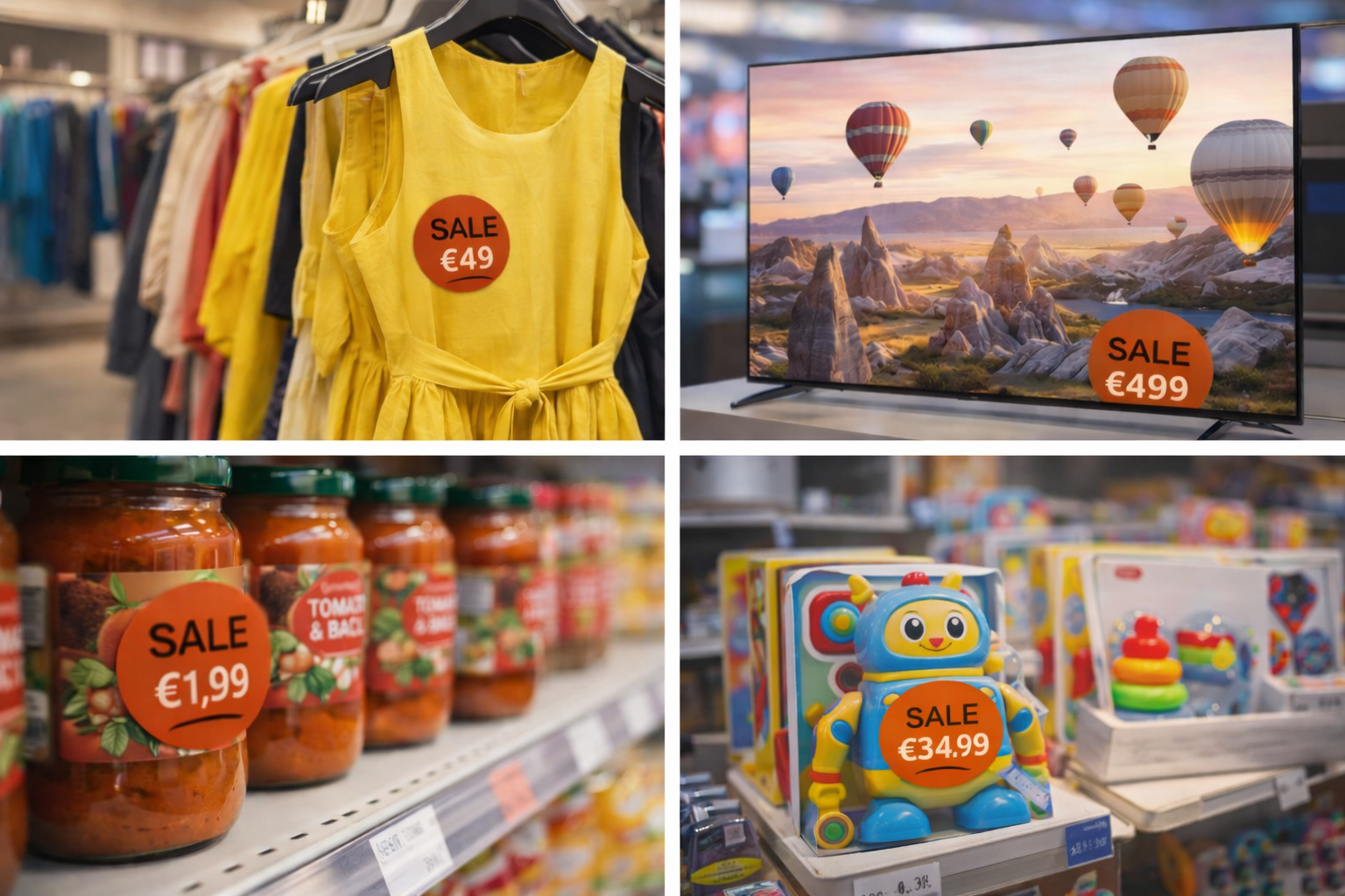 Setzen Sie Ihre Sonderangebote perfekt in Szene – mit unseren roten "SALE"-Etiketten!