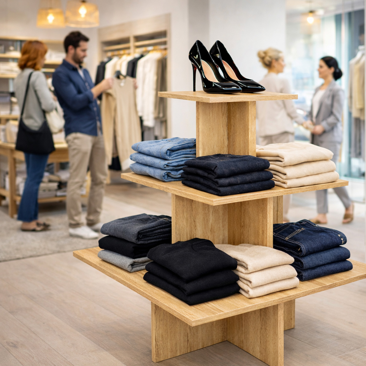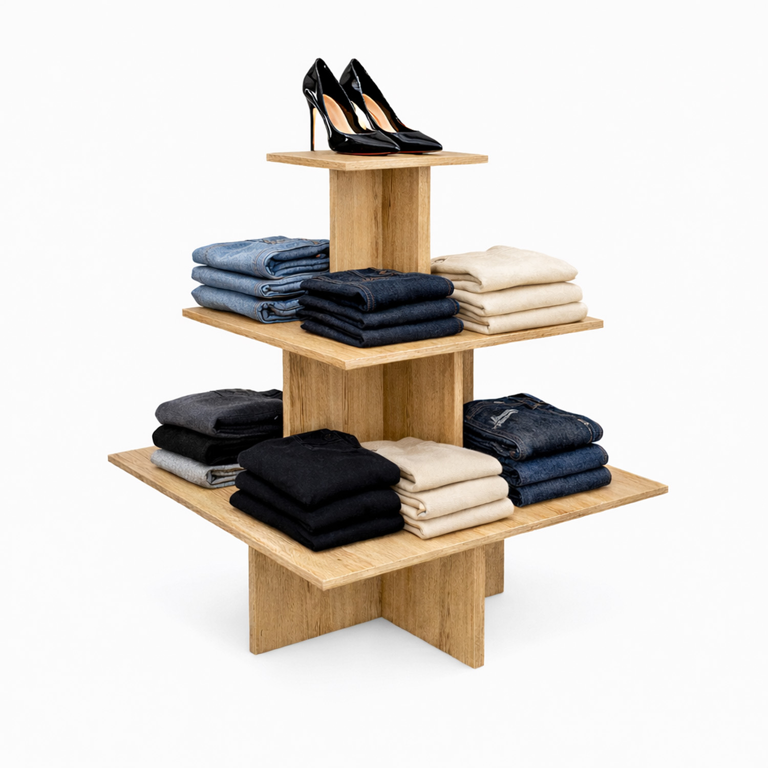 - Besonderheit: Drehbare mittlere und obere Ebene für eine 360°-Warenpräsentation und komfortablen Zugriff von allen Seiten