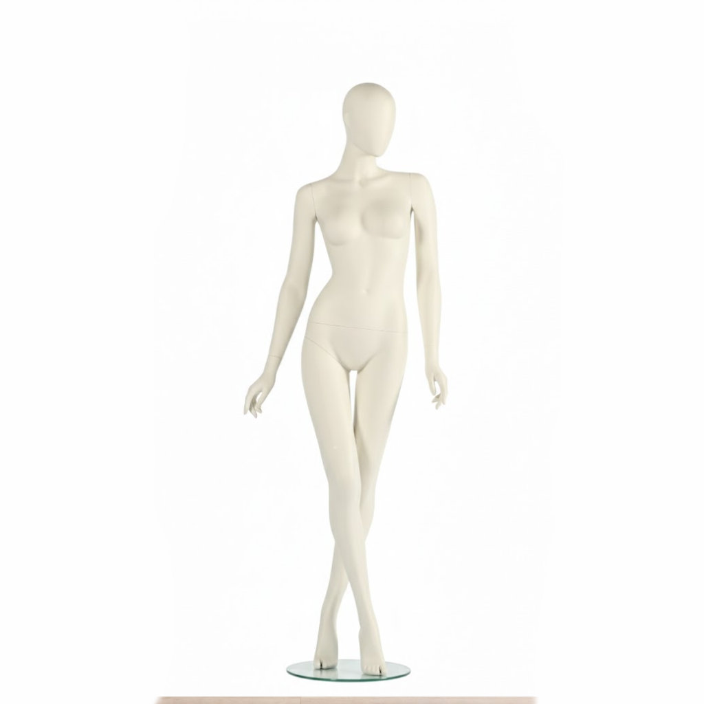 - Lieferumfang: Schaufensterpuppe inkl. runder Glasstandplatte