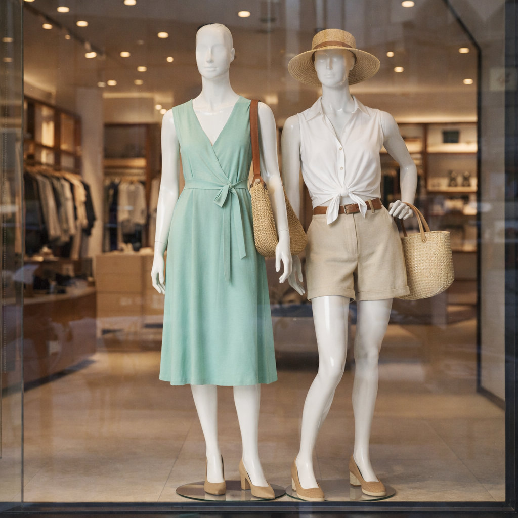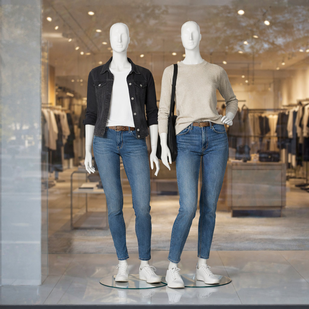 - Lieferumfang: Schaufensterpuppe inkl. runder Glasstandplatte