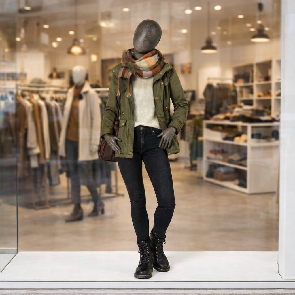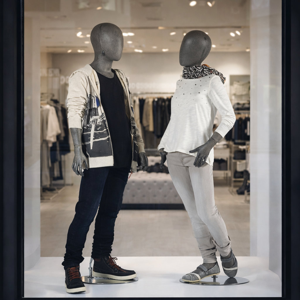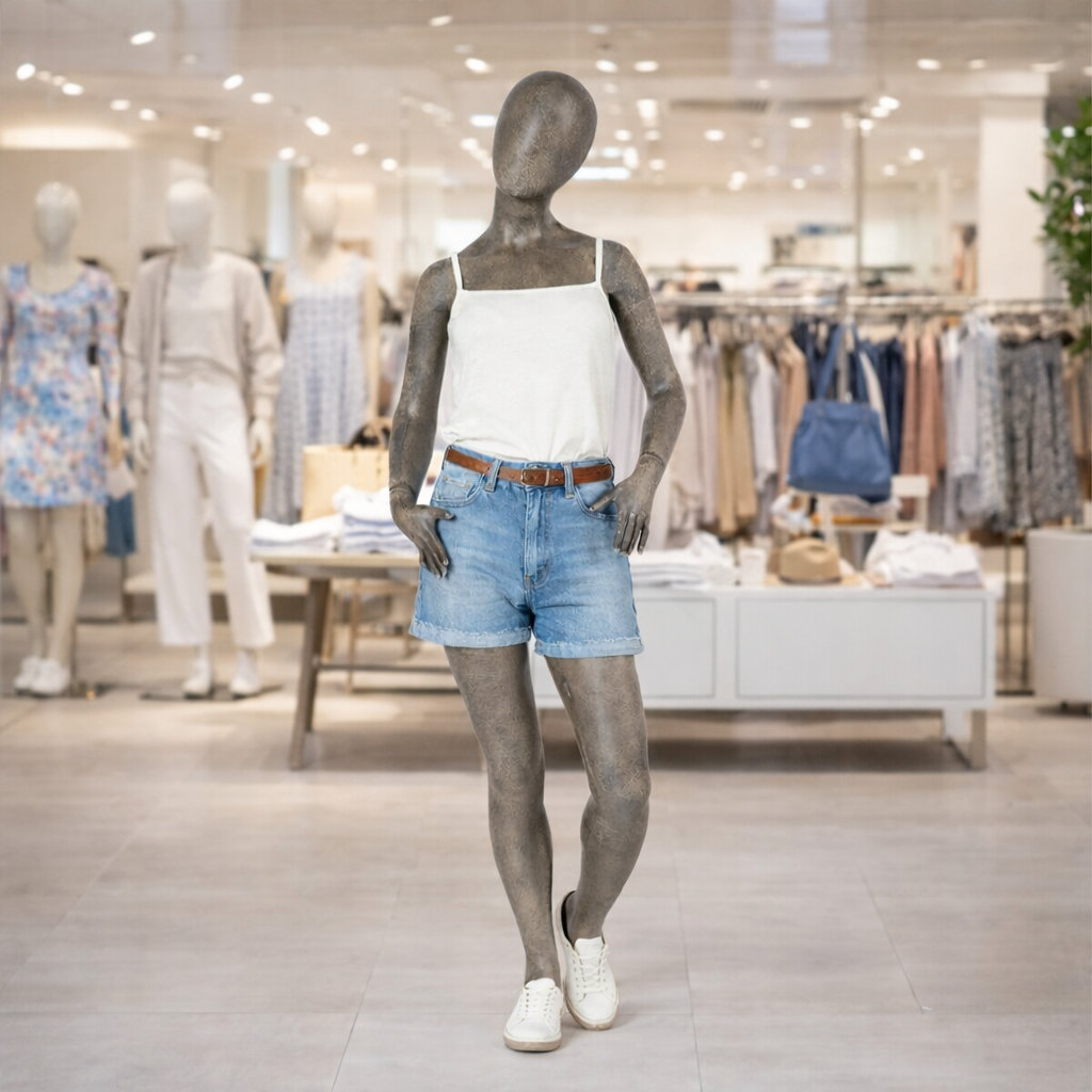 - Lieferumfang: Kinder-Schaufensterfigur inkl. runder Metallstandplatte