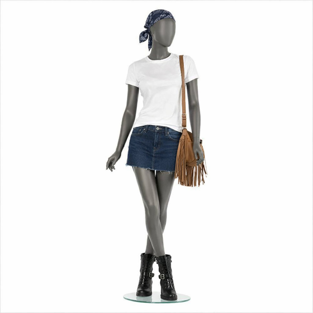 - Lieferumfang: Schaufensterpuppe inkl. runder Glasstandplatte