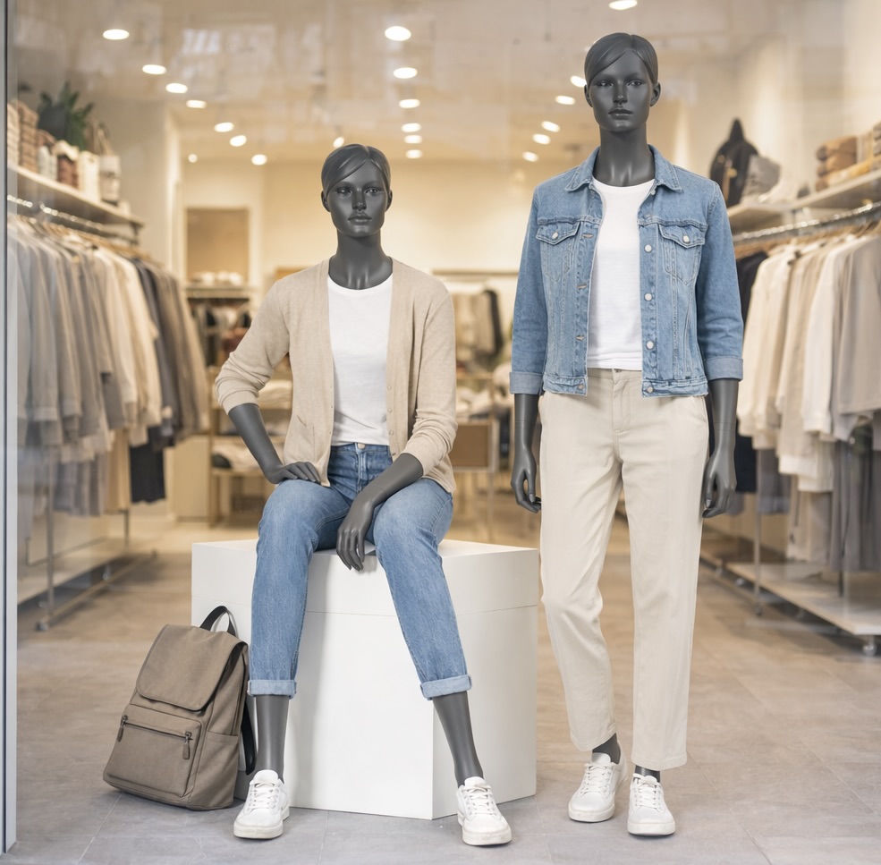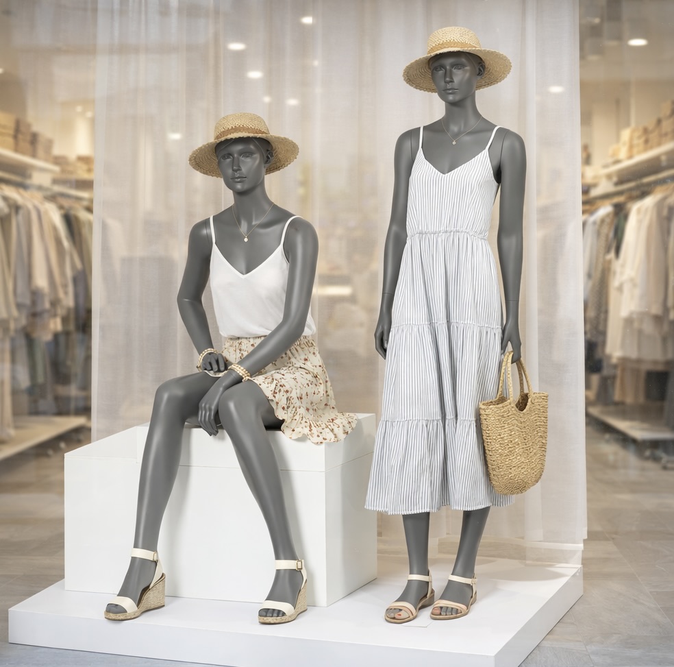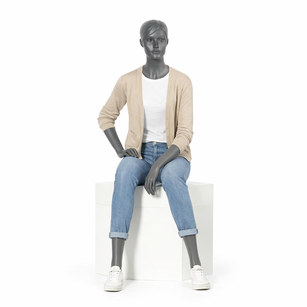 Sitzende Schaufensterpuppe schlank