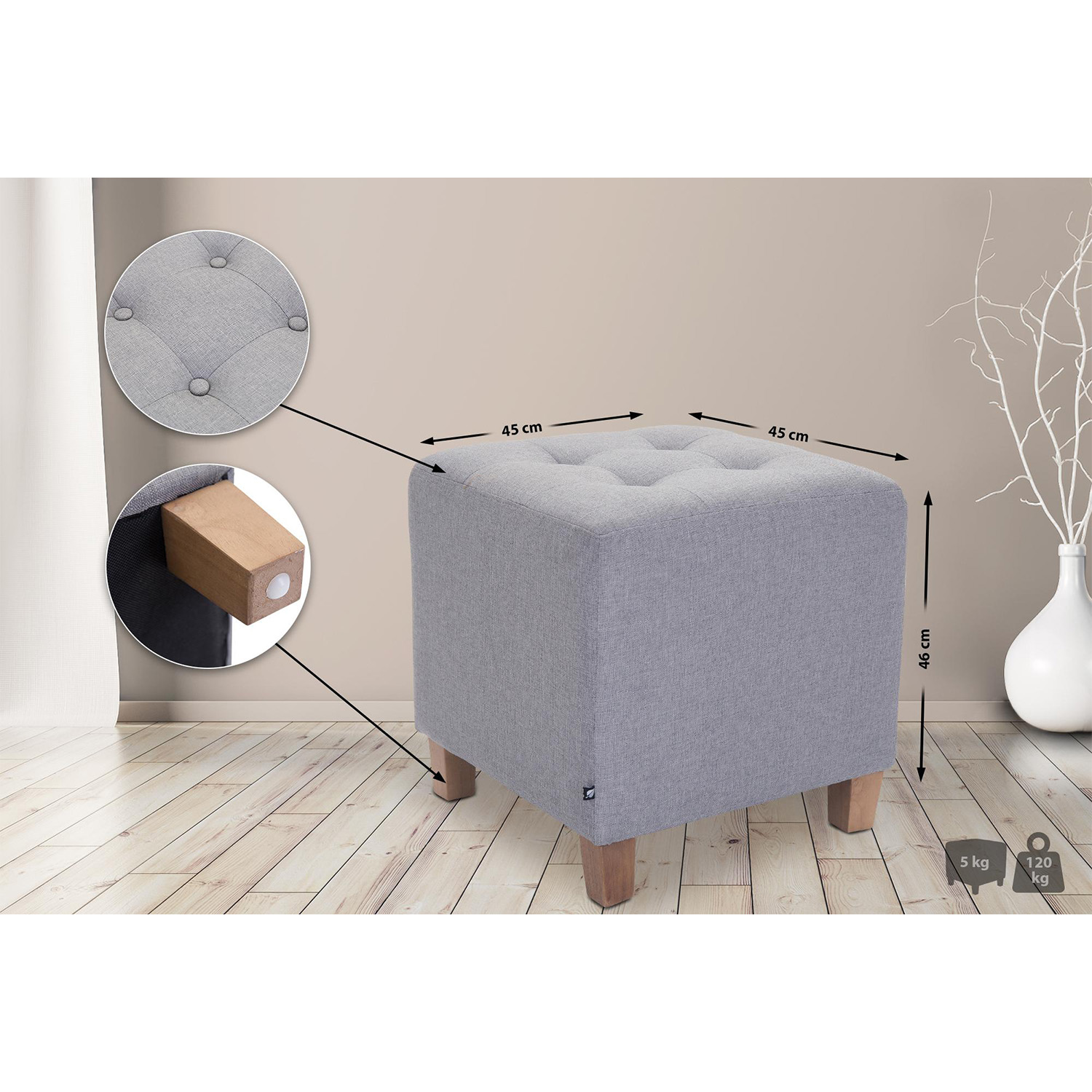 Dank seiner kompakten Maßen (B45 x T45 x H46 cm) bietet der Hocker maximalen Sitzkomfort bei minimalem Platzbedarf. Der strapazierfähige Stoffbezug sorgt für eine lange Lebensdauer und ist besonders pflegeleicht.