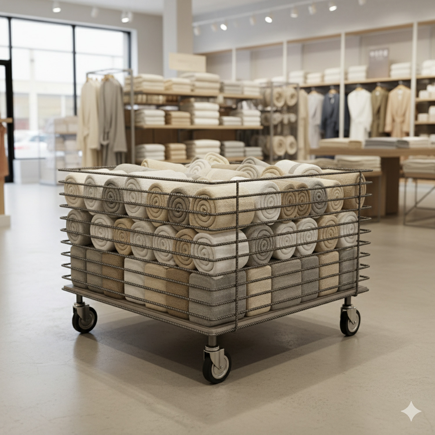 Dieser stabile Wühlkorb mit Holz-Fachboden und leichtgängigen Rollen präsentiert Aktionsware gut sichtbar und sofort griffbereit. Die robuste Metallkonstruktion und die flexible Mobilität machen ihn ideal für spontane Platzierungen in stark frequentierten Bereichen.